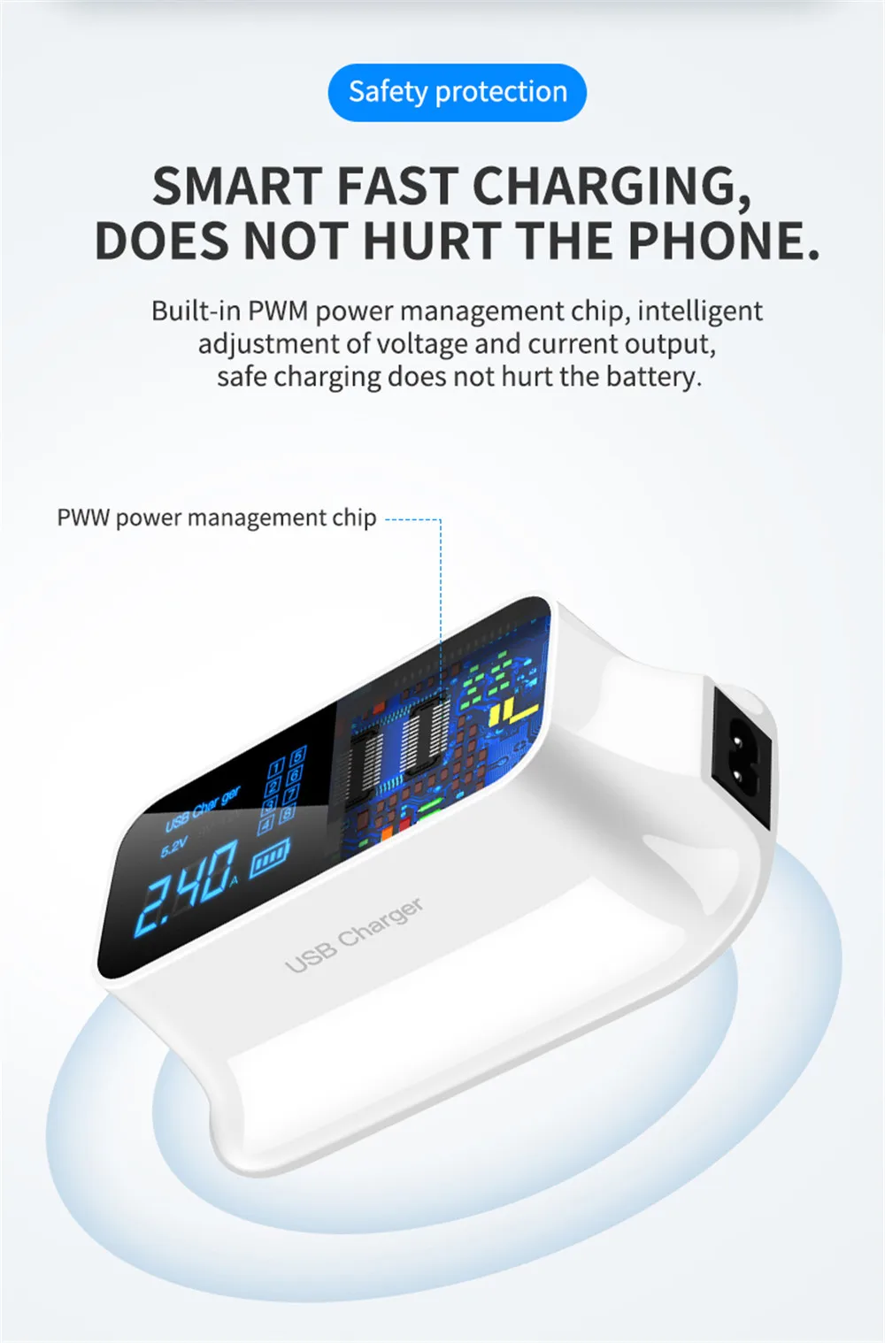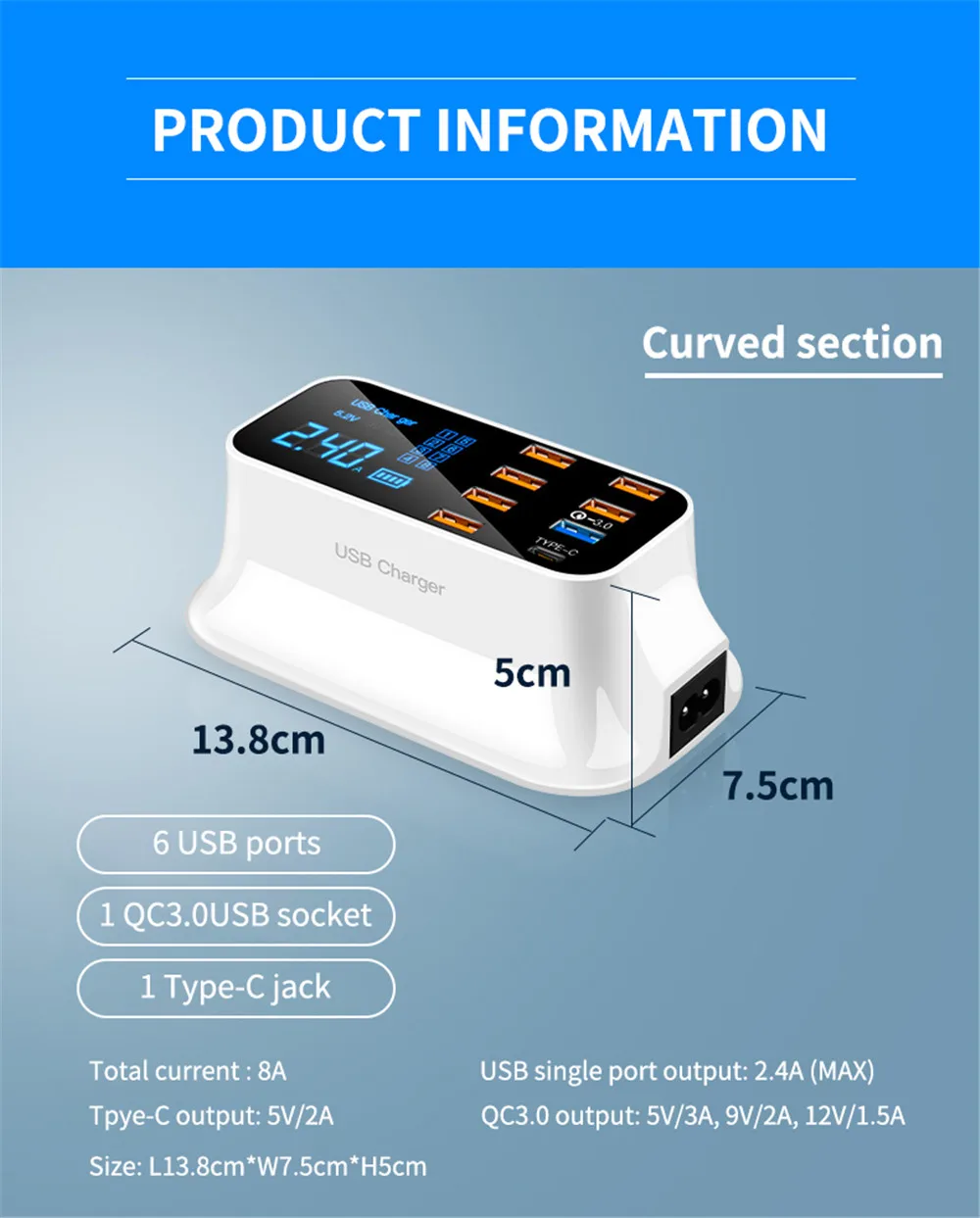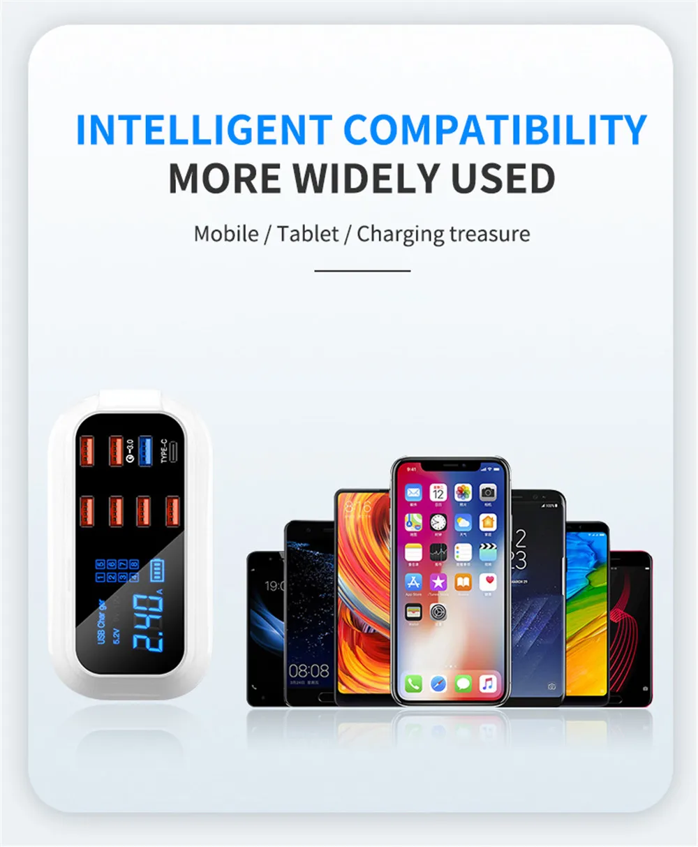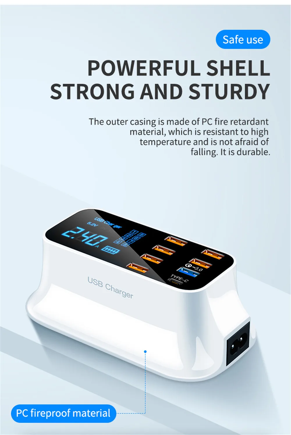 8 ports USB Charger (6 USB A + 1 QC3.0 + 1 USB C)