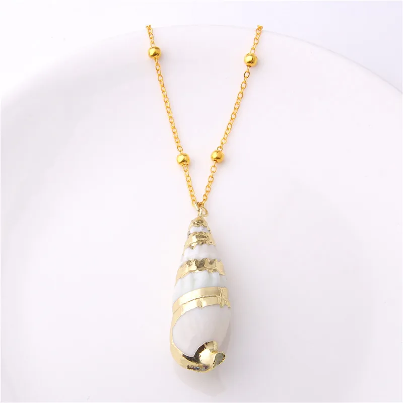 So beautiful! Ordered on: 11-11-2019 Received on:12-01-2019 Packaging: The package came in a secure bag that kept it perfectly intact, it was also wrapped in an additional plastic wrapper! Product: The material is different in the chain part and the actual shell. The chain is made up of a metal material and the small beads spread out are a plastic like material painted in gold, it is not possible to tell unless you feel it with your hands. The shell pendant appears to be an actual shell covered in a material to make it shiny and protect it, it is also painted with stripes of gold that seem to be sealed in. There is no flaking or scratching I’m very impressed, the spikes on the shell are a bit pointy so be careful to not press into your chest when wearing! Overall: I would definitely recommend the item you get exactly what is pictured, as long as you treat it with care it will last a while. Thank you store!! :)