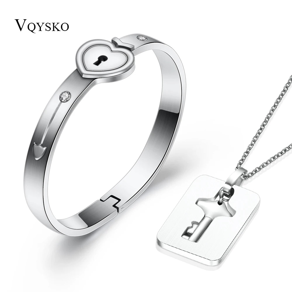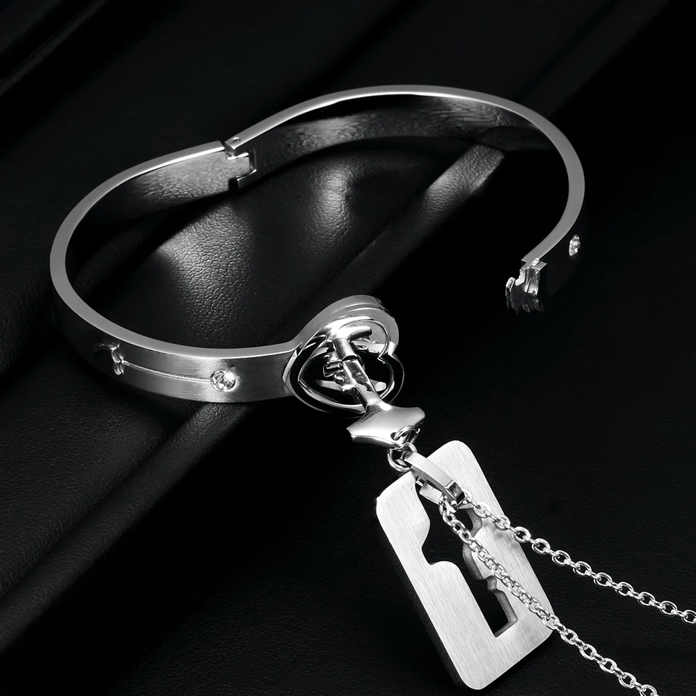 Heart Lock Bracelet & Key Necklace For Couple