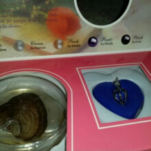 I loved both the necklace and the pearl. The necklace chain is of great quality, very shiny and thick with a strong clasp. The pearl itself was shiny and a lavender purple color, which according to the card represents wealth. The pearl was more egg shaped than round, and fits in the locket perfectly. The other thing I like is that the cage of the pendant has a three loop mechanism to thread the chain thru instead of an open-close hinge snap. So basically it could never accidentally open. It’s really beautiful and substantial! I was expecting a fishy smell or odor inside the shell, but it didn’t smell like anything. I mean the oyster meat stuff is there but it’s just water. Anyway, I love it , the price, and the quality. Finally a purchase I don’t regret or have to supplement parts