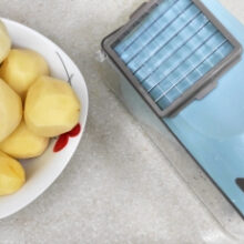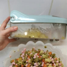 Hello, everybody! Chopper worthy. Knives are very sharp, cut with a bang. Don't be careful. Efforts need to be applied, but not significant. Plastic is thick, heavy of excellent quality. There are rubber soft legs, does not slip. Cutting potatoes took exactly a minute. Before Yekaterinburg the parcel came for a month.